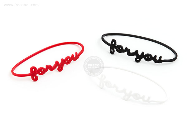 英語のメッセージをかたどった、カラフルなシリコン製バンドです。
