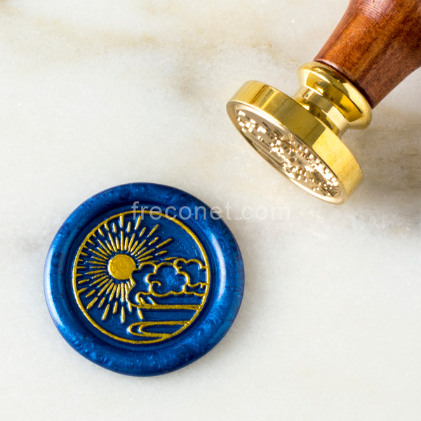天空から力強く光を注ぐ太陽のシーリングスタンプです。