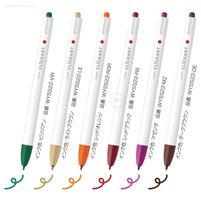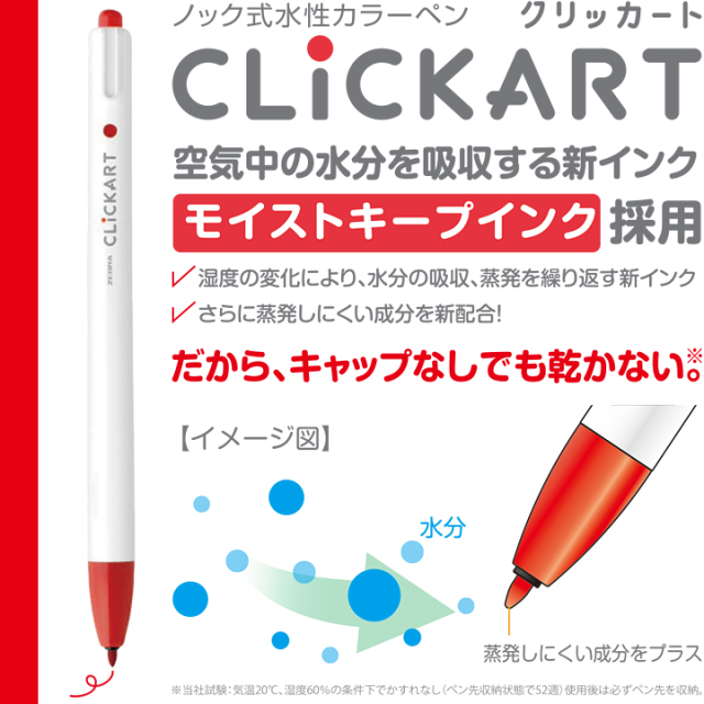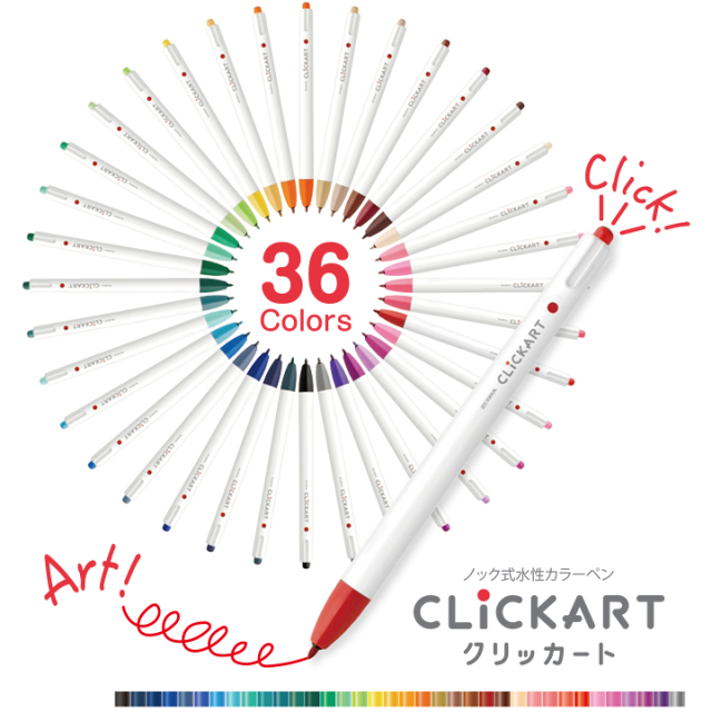 インクが蒸発しにくいキャップレスのノック式水性カラーペン「クリッカート」